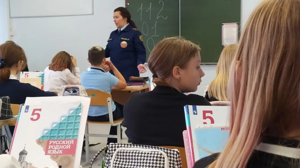 21.09.2023 г. Инструктор по противопожарной профилактике Ломоносовского местного отделения ВДПО ЛО Ахмадуллина О.В. провела урок для 5 «в» класса МОУ № 3 Ломоносовского района.