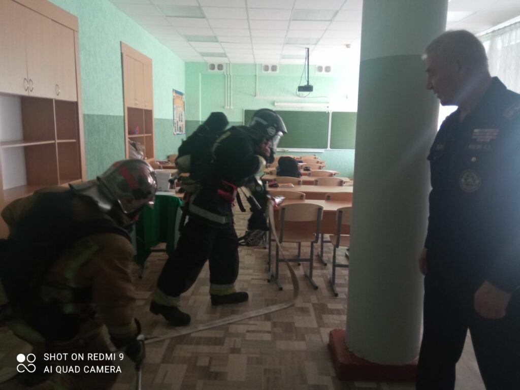 Пока шла эвакуация пожарные уже въезжали на территорию школы. Коломийцев доложил начальнику дежурного караула о принятых мерах и указал место возможного пожара. Дежурный караул произвел боевое развертывание, звено газодымозащитной службы провело разведку и ликвидировало возгорание имеющимися силами и средствами.