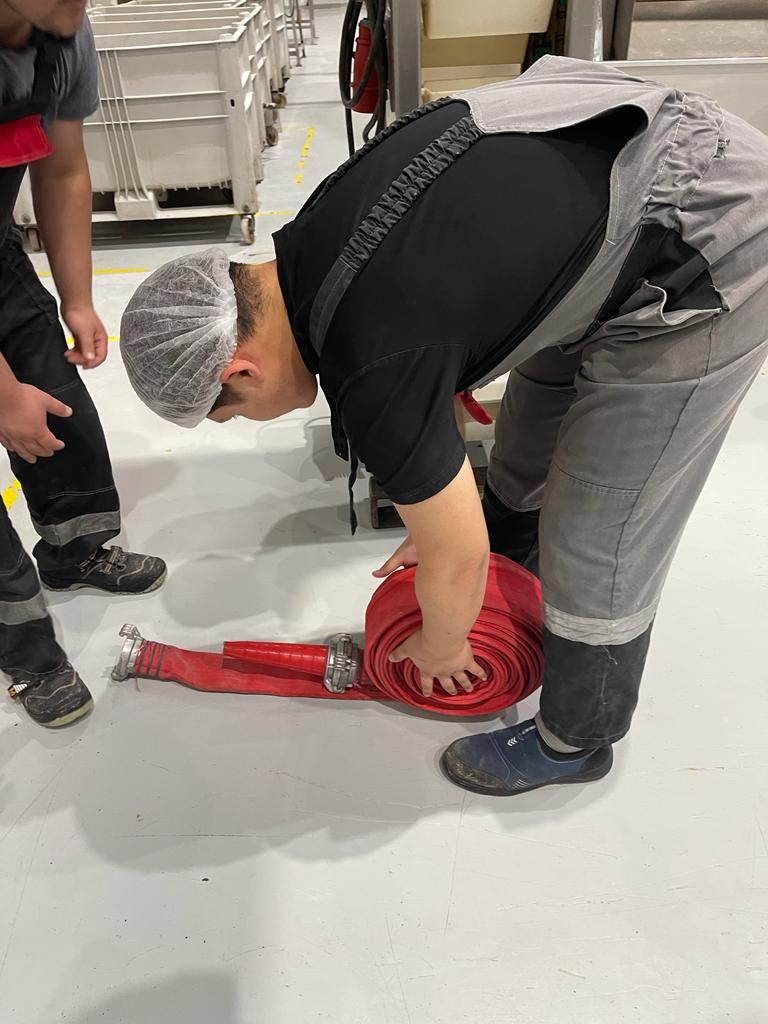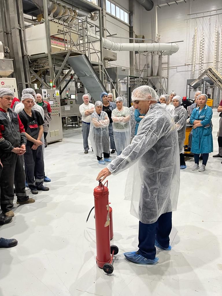 Сейран Георгиевич провел теоретический инструктаж по использованию первичных средств пожаротушения согласно их классификации. Разобрали ситуацию ликвидации очага возгорания на производстве при помощи специальных и подручных средств, также проговорили порядок действий сотрудников в случае возникновения чрезвычайной ситуации.