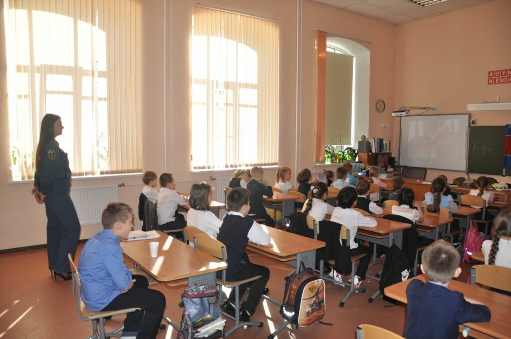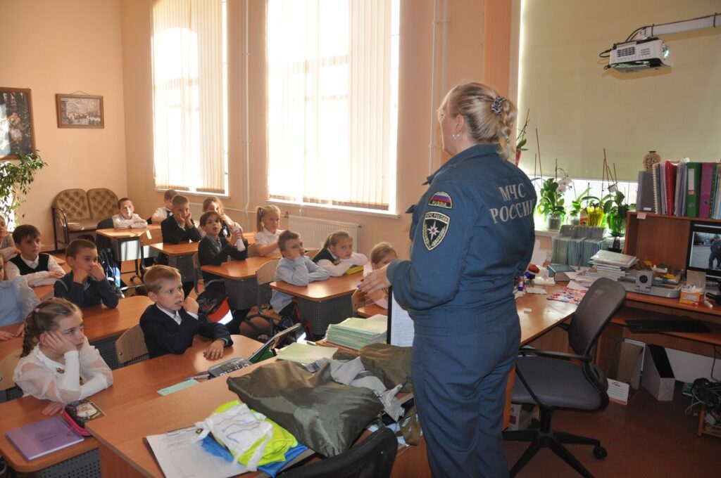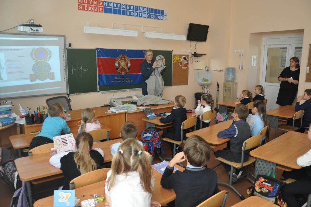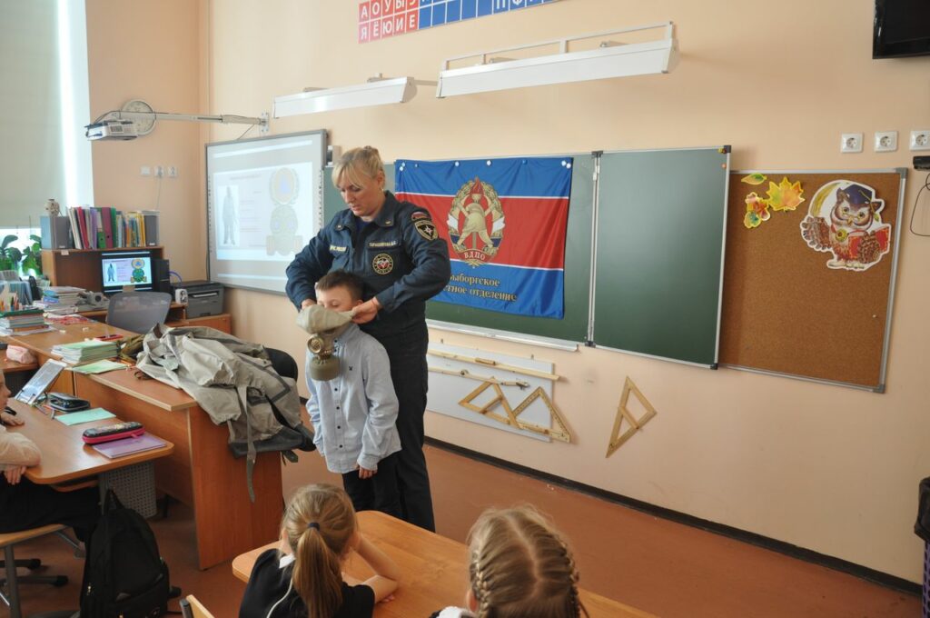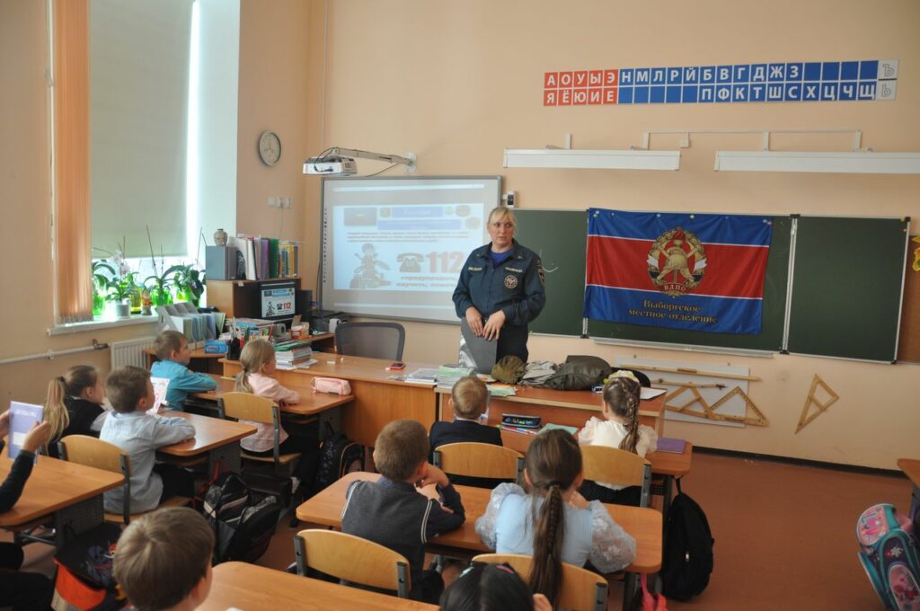 Сотрудники 26 пожарно-спасательного отряда Главного управления МЧС России, совместно с Отделом надзорной деятельности и профилактической работы по Выборгскому району и Выборгским местным отделением Всероссийского добровольного пожарного общества Ленинградской области посетили 2 “А” класс МБОУ СОШ №1 города Выборга с открытым уроком, чтобы рассказать и показать что же такое Гражданская оборона.