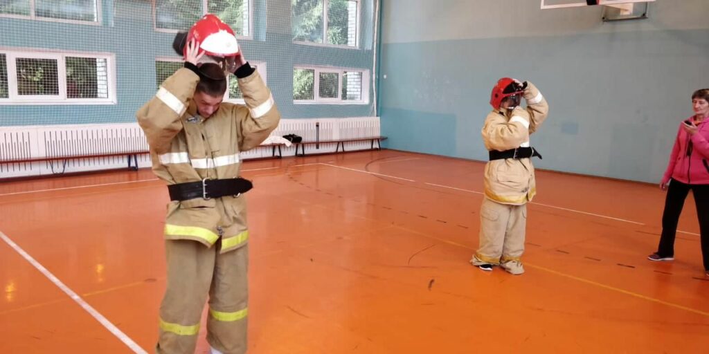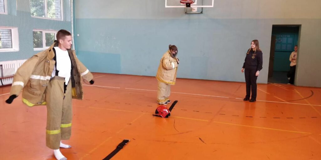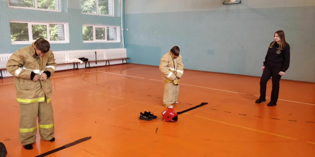 В ходе практического занятия новобранцы дружины изучили комплектацию и способы скоростного надевания боевой одежды пожарного.