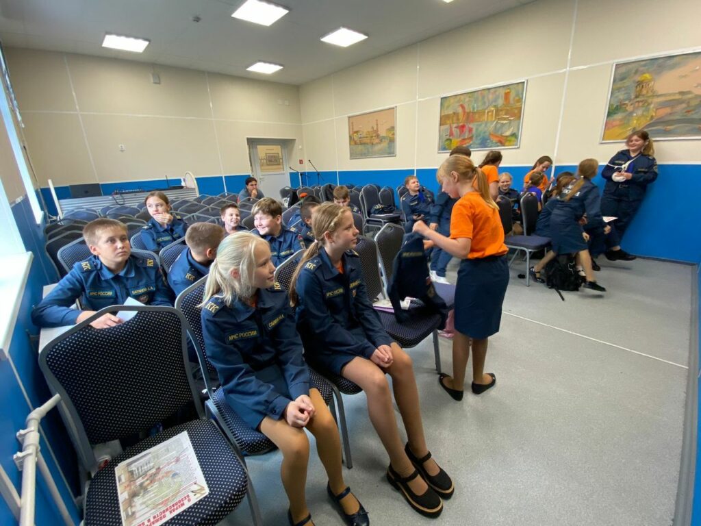В Гатчине сотрудники отдела надзорной деятельности и профилактической работы Гатчинского района и сотрудники Гатчинского местного отделения ВДПО ЛО провели этот день в кадетском классе МЧС в средней школе № 7.