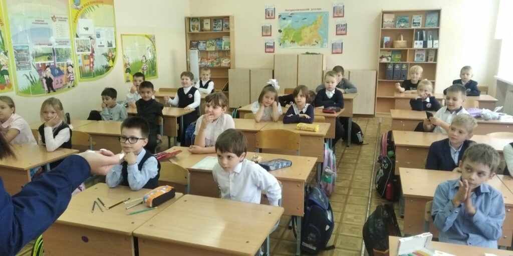 04.10.2023 г. Инструктор по противопожарной профилактике Ломоносовского местного отделения ВДПО ЛО Ахмадуллина О.В. провела урок для 1 класса Русско-Высоцкой школы.