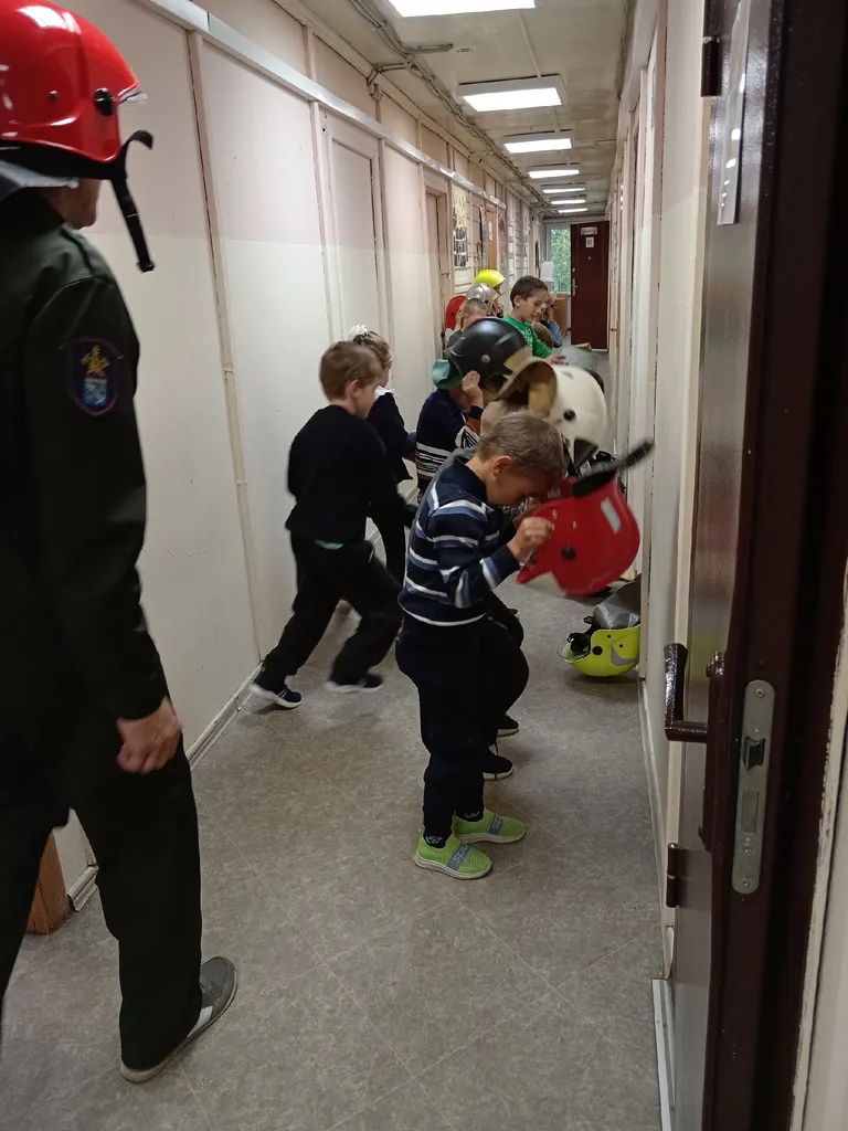 В завершении занятия, малыши тоже испробовали себя в роли спасателей. По команде «Тревога!» ребята готовились к «выезду»: быстро выбегали к месту построения, одевали каски и занимали место в строю…