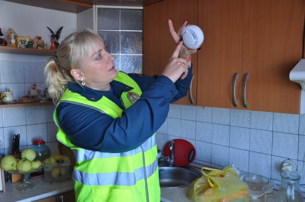 Инструктор Выборгского МО ВДПО ЛО каждому ветерану установил автономные пожарный извещатель, объяснил принцип его работы. Сотрудники пообщались на бытовые темы, выслушали каждого.