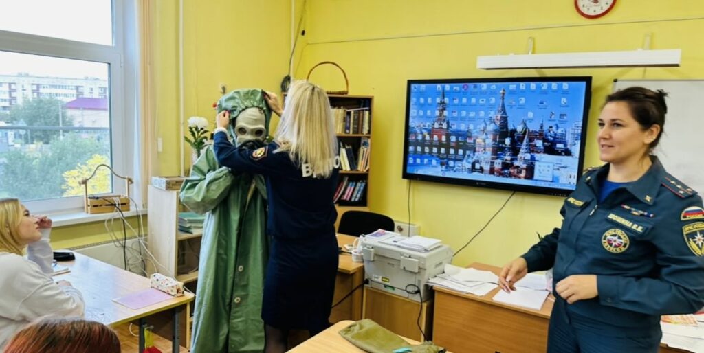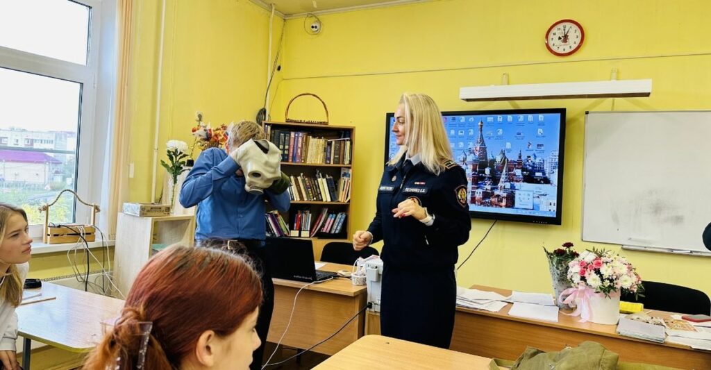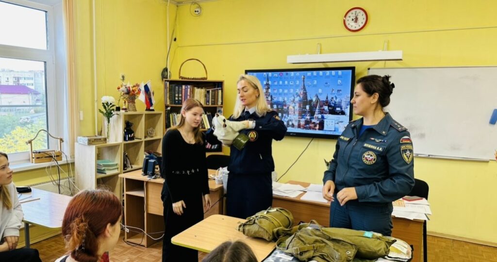 Для более глубокого погружения в тему занятия, детям показали документальный фильм, а также разобрали с ними содержимое тревожного чемоданчика. Ребята узнали, для чего он нужен и в каких экстренных ситуациях может пригодиться. Также их познакомили с сигналом оповещения «Внимание всем!» и рассказывали о действиях, которые необходимо предпринимать при его звучании.