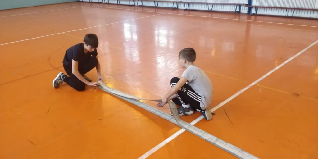В ходе практического занятия ребята учились навыкам сбора пожарно-технического вооружения, а именно обращению с пожарными рукавами. Ранее на теоретических занятиях ребят уже изучили их технические характеристики, условия эксплуатации и условия хранения.