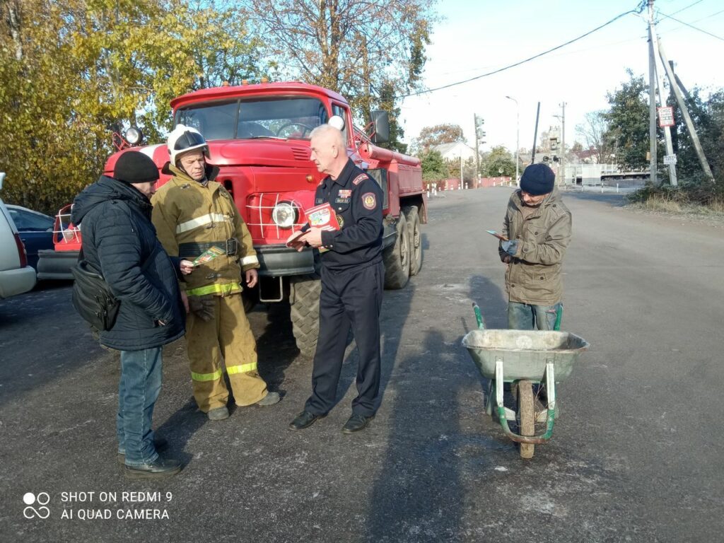 Всем пришедшим на встречу были розданы листовки по пожарной безопасности, а некоторые смогли ознакомиться с пожарной автоцистерной, стоящей на вооружении ДПК.