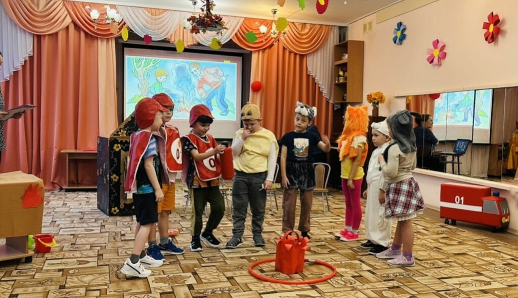 С самого утра детский сад наполнился азартом и радостными голосами. Малыши представили свою версию сказки «Колобок», где каждый персонаж был не просто сказочным героем, но и нес в себе образовательную часть. Ребята демонстрировали свои знания в игровой форме, участвуя в эстафетах и конкурсах, которые были направлены на закрепление правил поведения в случае возникновения пожара.