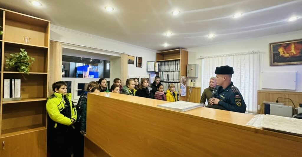 Первая остановка экскурсии – пункт связи. Здесь ребятам рассказали о том, как поступают звонки с просьбами о помощи, о важности точности и оперативности в работе. Ученики увидели, как устроена диспетчерская, и познакомились с документацией, которая помогает пожарным ориентироваться в экстренных ситуациях.