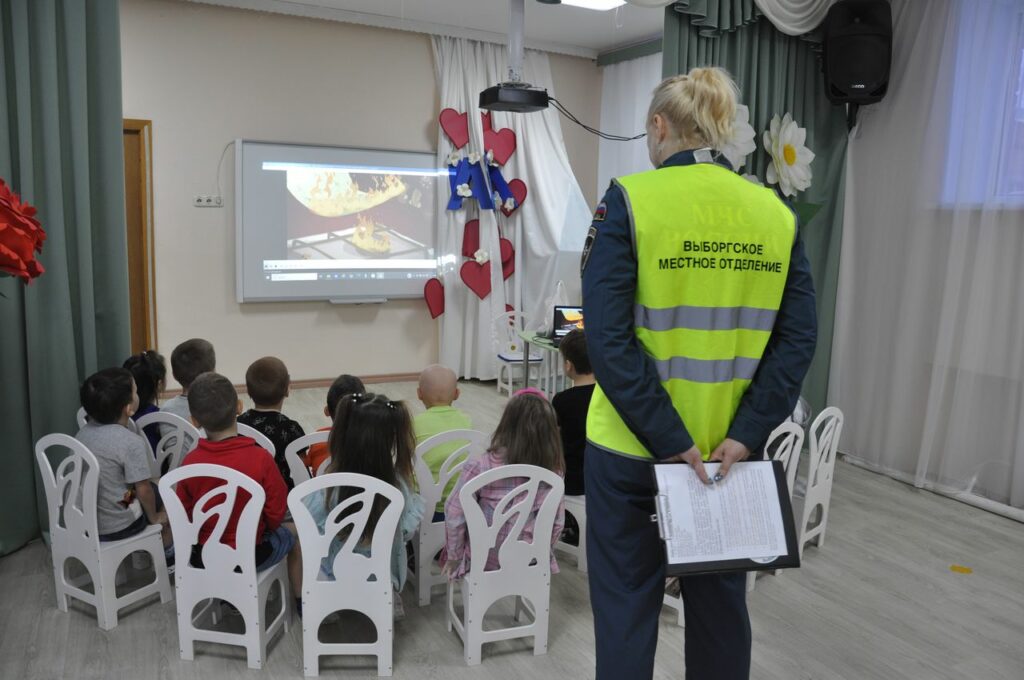В гости к воспитанникам МБДОУ «Детский сад № 1» города Выборга традиционно пришли инструктор социально-ориентированной деятельности Выборгского местного отделения Всероссийского добровольного пожарного общества Ленинградской области, а также сотрудники 26 пожарно-спасательного отряда Главного управления МЧС России по Ленинградской области, сотрудники Отдела надзорной деятельности и профилактической работы по Выборгскому району и добровольцы-спасатели ВСКС Ленинградской области, для проведения урока по пожарной безопасности.
