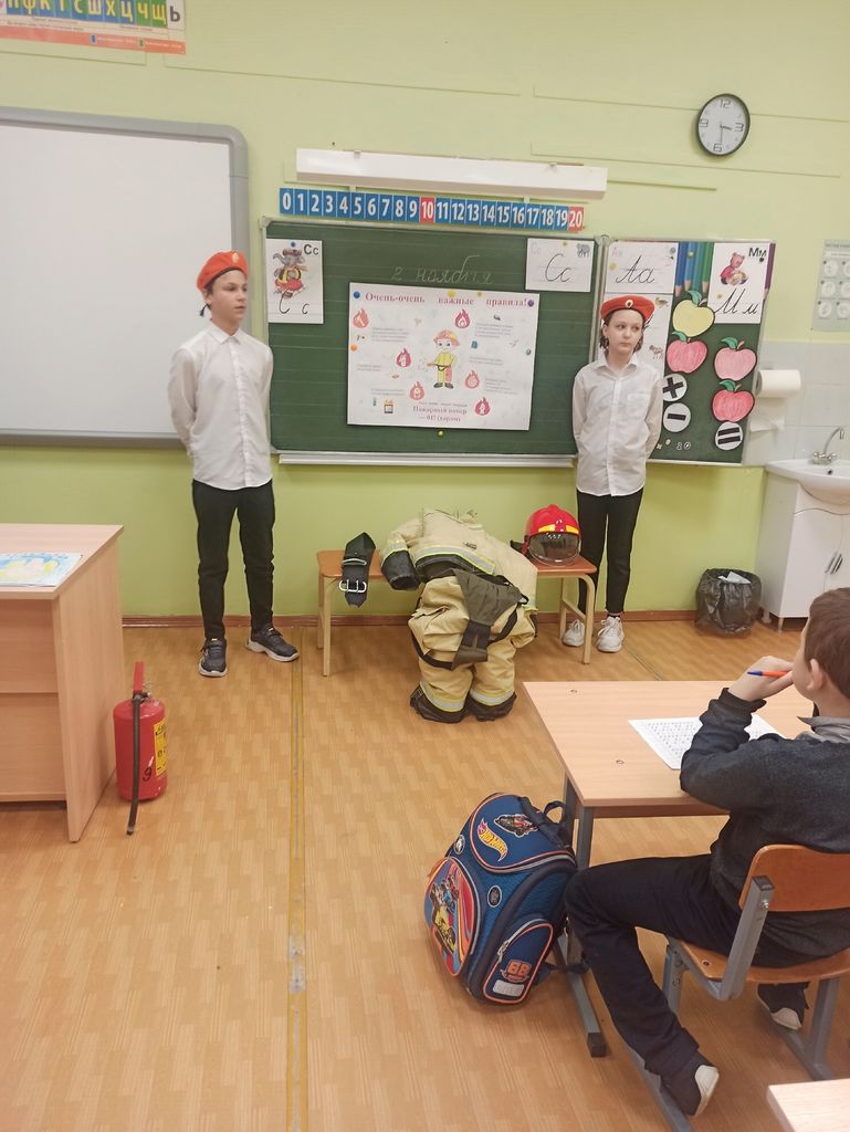 Юные пожарные из 5 «А» и 5 «Б» классов изготовили открытки по правилам пожарной безопасности, после чего провели профилактические мероприятия на противопожарную тематику с обучающимися начальной школы.