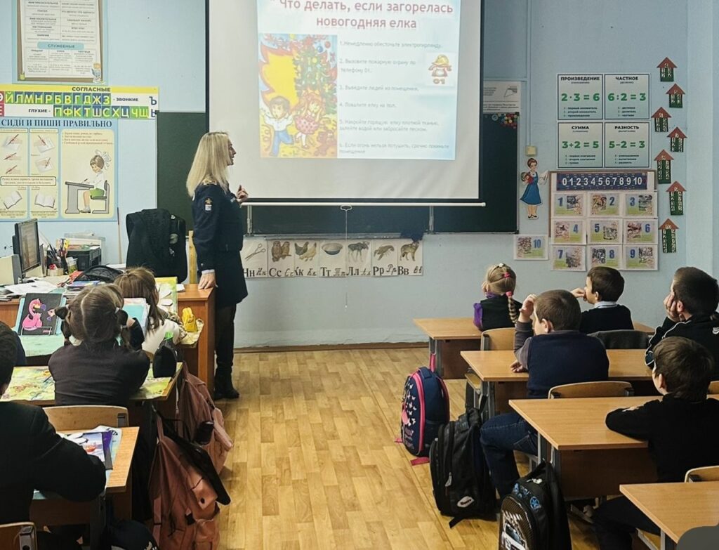 В ходе занятия сотрудники Тосненского местного отделения ВДПО ЛО и отдела надзорной деятельности и профилактической работы подробно обсудили с учениками основные правила пожарной безопасности, акцентируя внимание на безопасности при установке новогодней ёлки и украшении её игрушками.