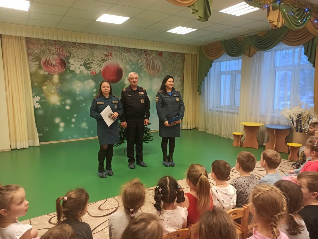 В беседе с детьми в игровой форме были повторены основные меры безопасности в случае чрезвычайных ситуаций, а также действия при пожаре. Основное внимание, конечно, было уделено профилактическим мероприятиям, а именно: как и чем можно наряжать новогоднюю елку, как и в присутствии кого можно пользоваться несложными пиротехническими изделиями, надо ли выключать гирлянду на ночь и многое другое.