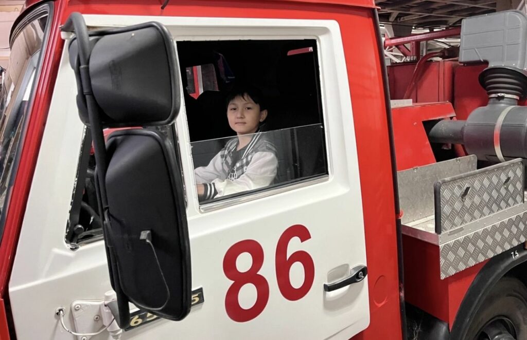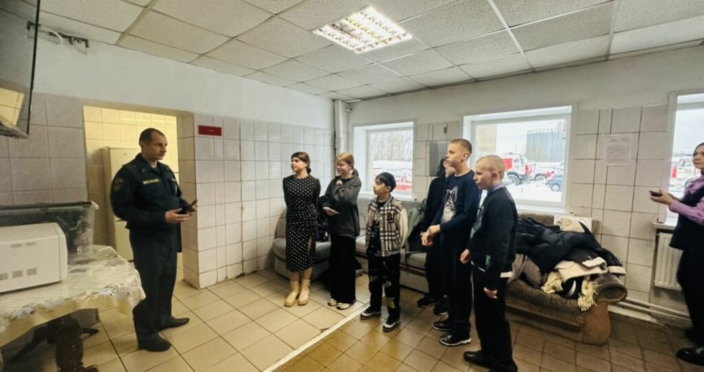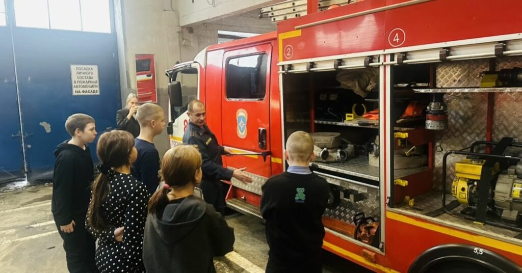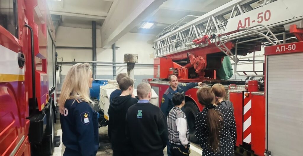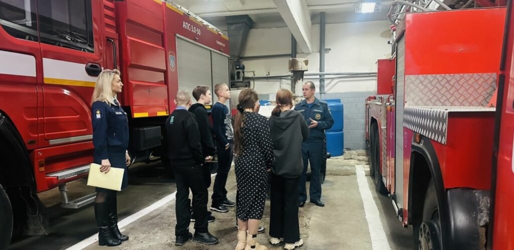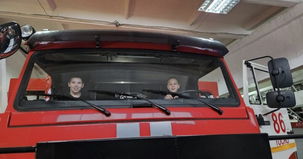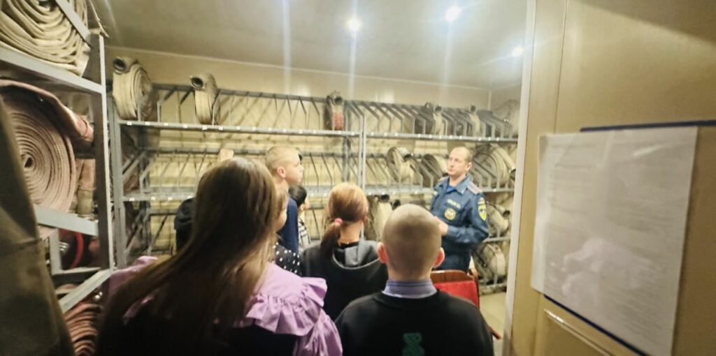 Илья Зорькин – командир отделения, провел для ребят полноценную экскурсию по всем помещениям пожарной части. Он рассказал о своих трудовых буднях, поделился опытом работы и показал пожарное оборудование и инвентарь. Особый восторг у ребят вызвала возможность посидеть в пожарной машине – это стало действительно ярким и запоминающимся моментом экскурсии.