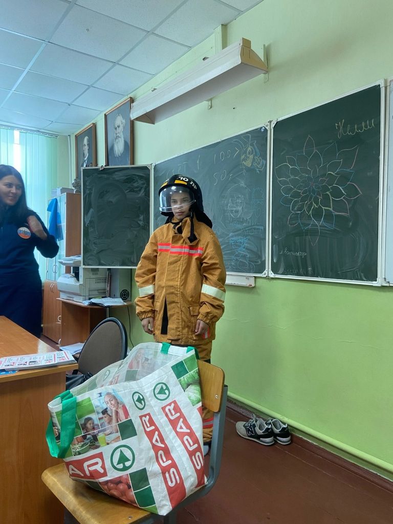 В ходе урока с учениками была проведена беседа по будущей профориентации, и инструктор рассказала ребятам о том какие должности есть в пожарной части, график работы, какие перспективы карьерного роста существуют, а также информацию об условиях поступления в вузы и колледжи ГПС МЧС России.