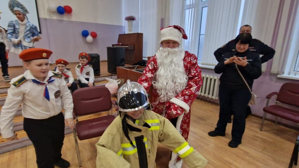 Ребята показали свои знания правил пожарной безопасности и умения в надевании боевой одежды пожарного. Спели песни и рассказали стихи. В завершении мероприятия все водили Новогодний хоровод и получили от Дедушки Мороза полезные подарки и сувениры.