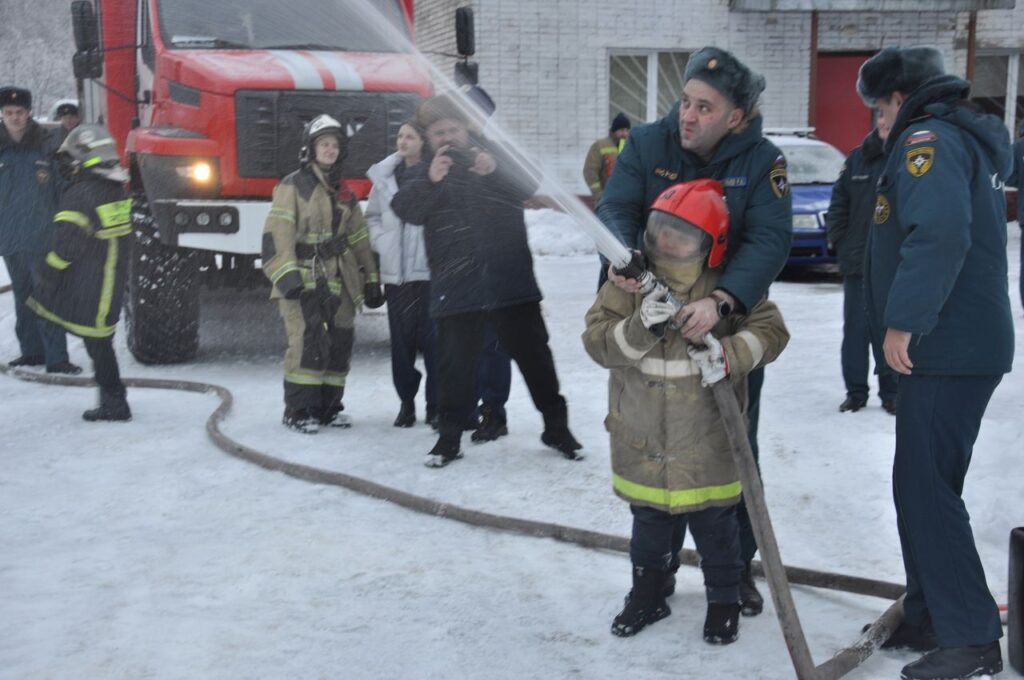 Торжественное мероприятие открывали студенты-добровольцы из Всероссийского студенческого корпуса спасателей Ленинградской области под гимн Российской Федерации пронеся флаг. Начальник 26 пожарно-спасательного отряда ГПС Главного управления МЧС России по Ленинградской области подполковник внутренней службы Трапезников И.С. поздравил личный состав с наступающим Новым годом и пожелал «сухих рукавов».
