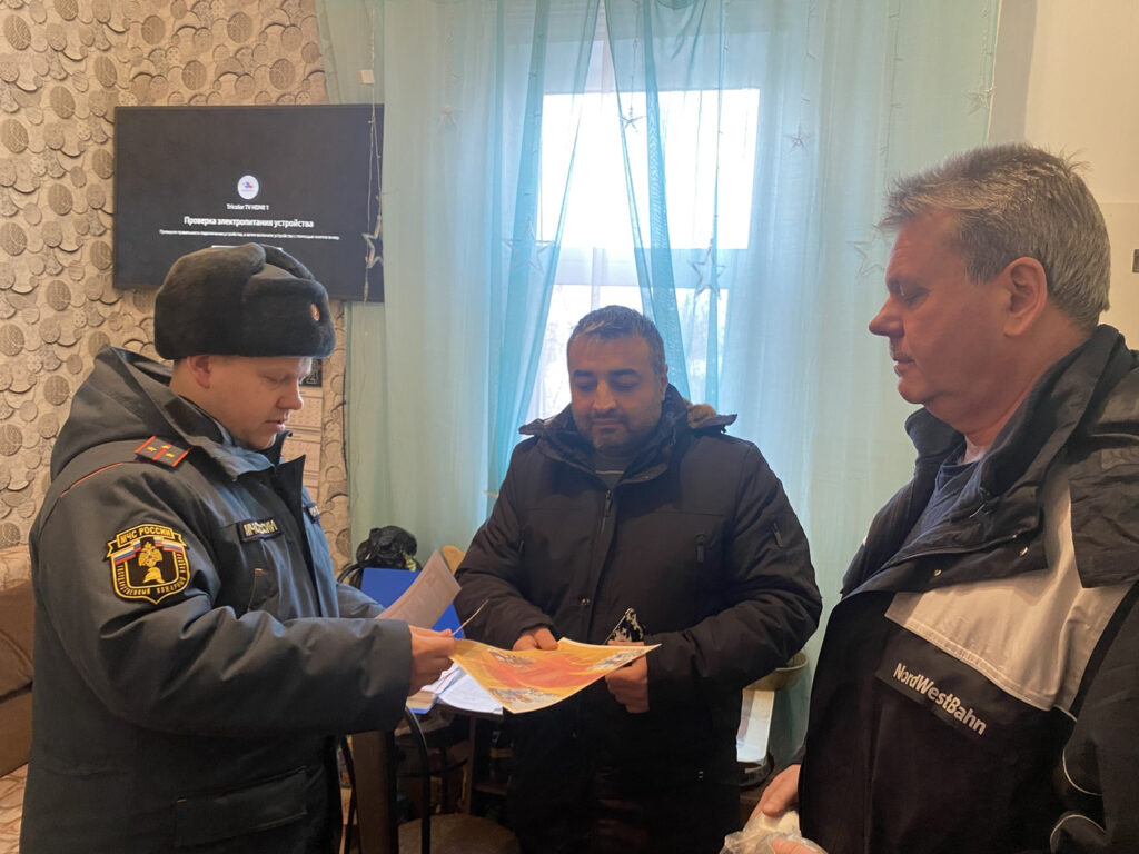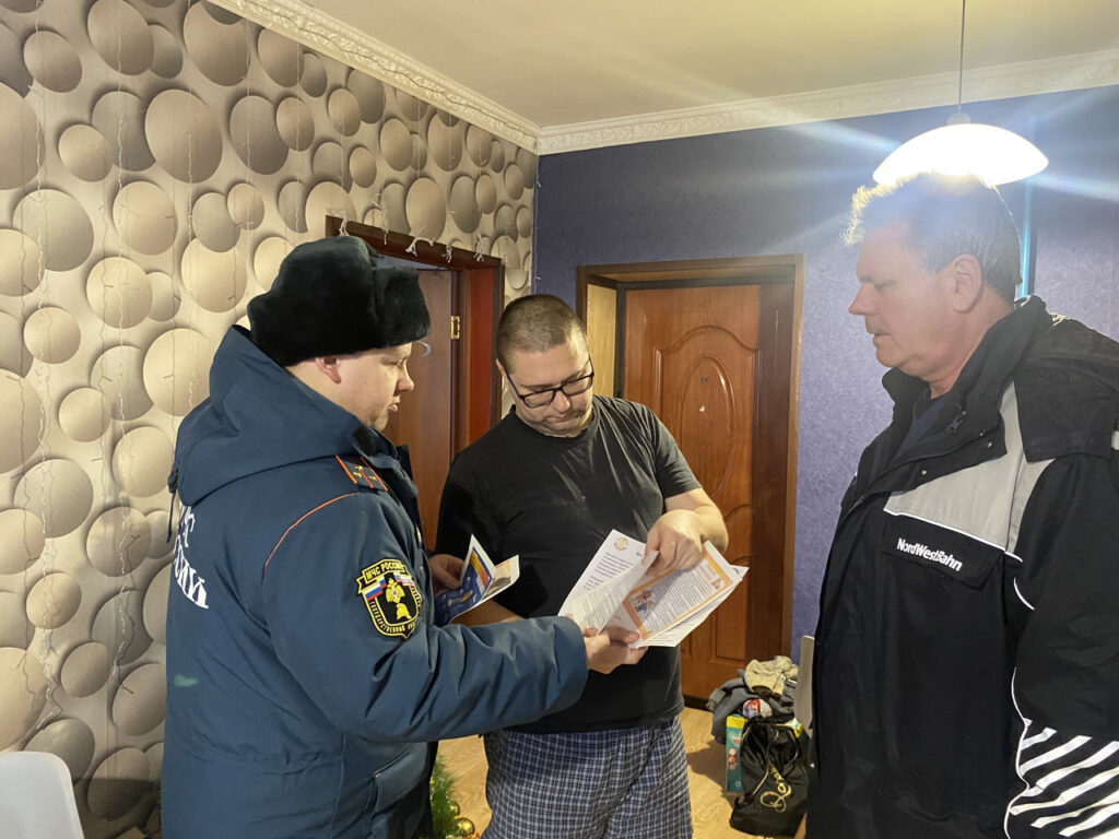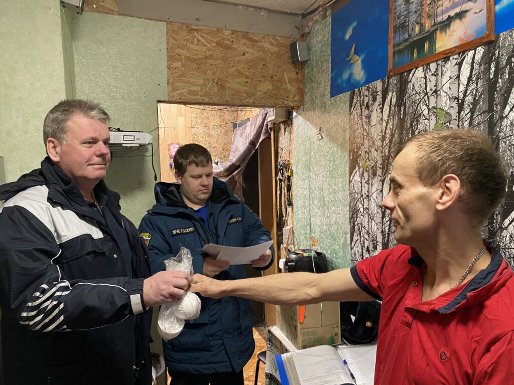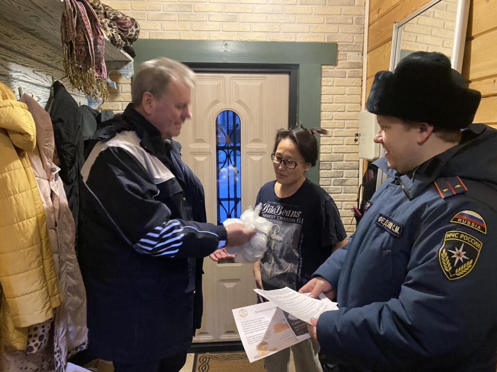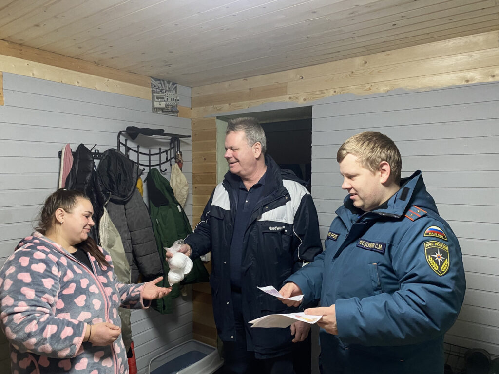 Специалист социально-ориентированной деятельности Кингисеппского местного отделения ВДПО ЛО Федорова Е.С., инспектор отдела надзорной деятельности и профилактической работы Кингисеппского района управления надзорной деятельности и профилактической работы ГУ МЧС России по Ленинградской области Федякин С.М., инструктор противопожарной профилактики пожарной части отряда государственной противопожарной службы Кингисеппского района Шовкунова О.И., совместно с ведущим специалистом отдела по делам ГО и ЧС комитета по безопасности Бернацким А.И. провели профилактический рейд.