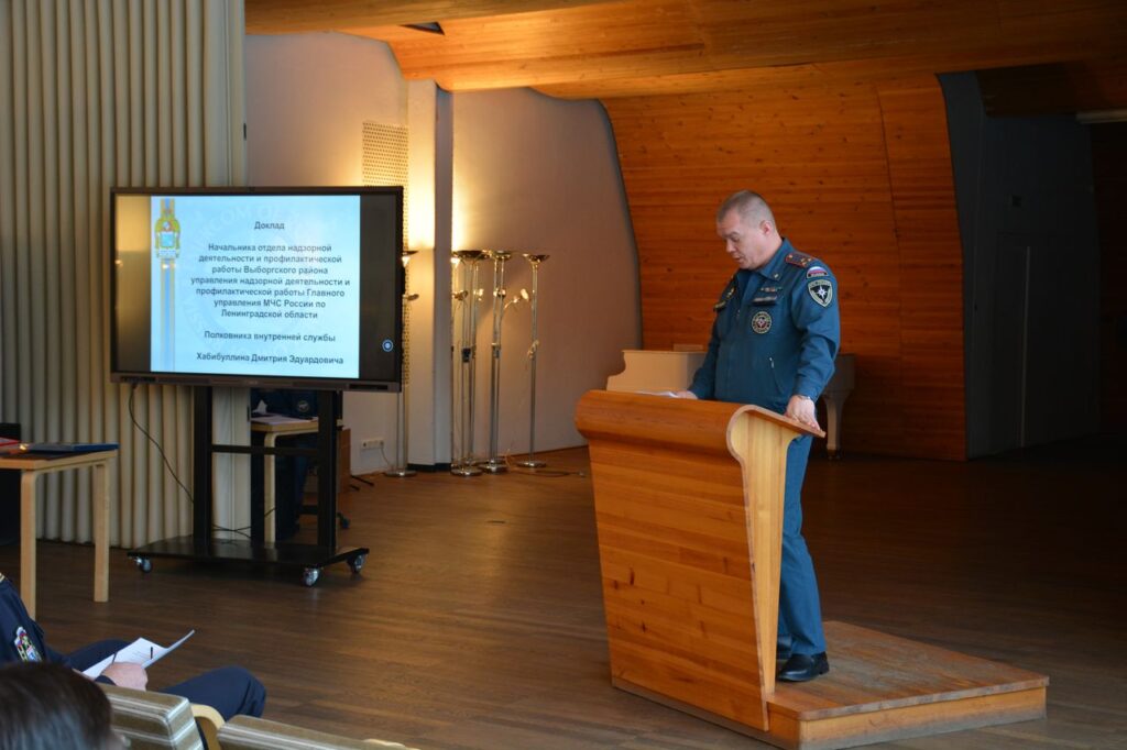 В конференц-зале библиотеки А. Алто состоялось подведение итогов за 2023 год и постановка задач на 2024 год Выборгского местного пожарно-спасательного гарнизона.