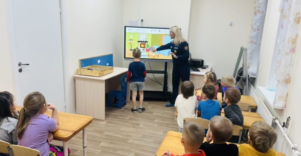 В детском саду № 12 прошло занятие по пожарной безопасности для воспитанников подготовительной группы «Радуга», организованное сотрудниками Тосненского местного отделения ВДПО ЛО и отдела надзорной деятельности и профилактической работы. Это мероприятие стало частью плана профилактических работ, направленных на повышение осведомленности детей о пожарной безопасности.