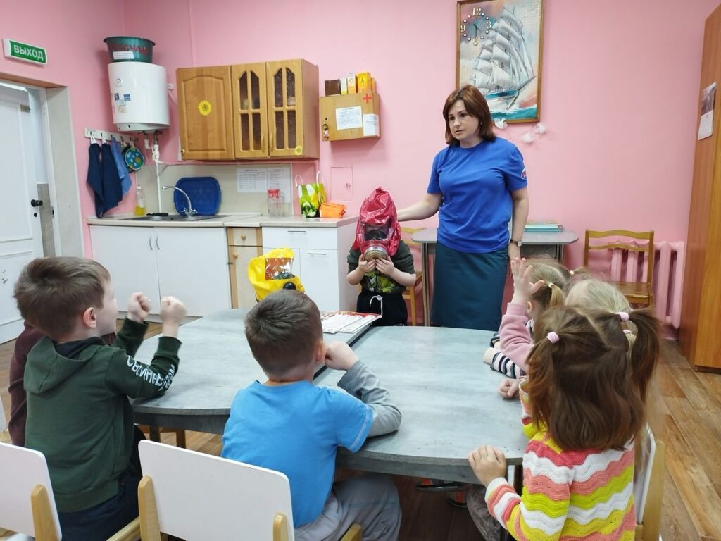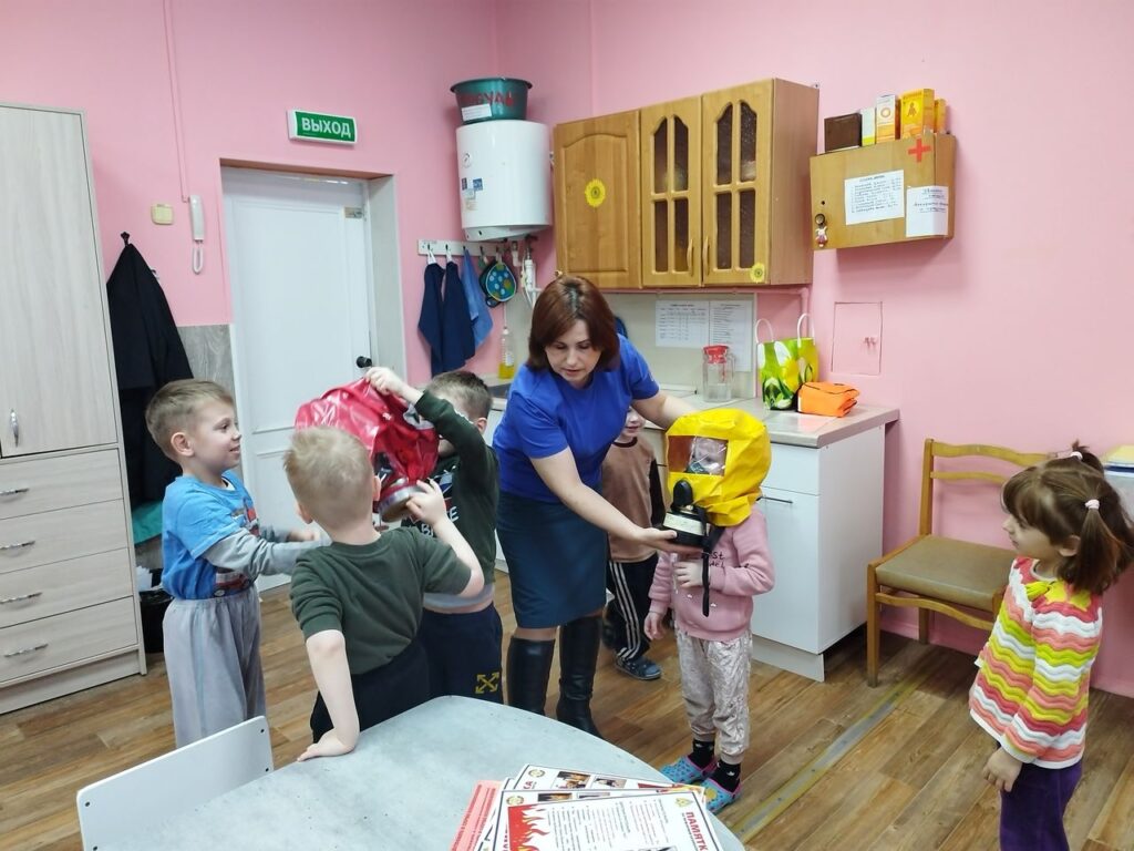 Затем ребятам предоставили возможность самим одеть детский «противогаз». Потренироваться как надо спасаться от огня. А также задать те вопросы, которые интересовали детский пытливый ум.