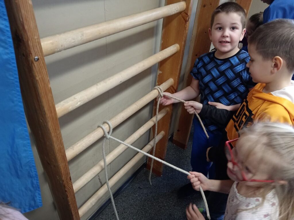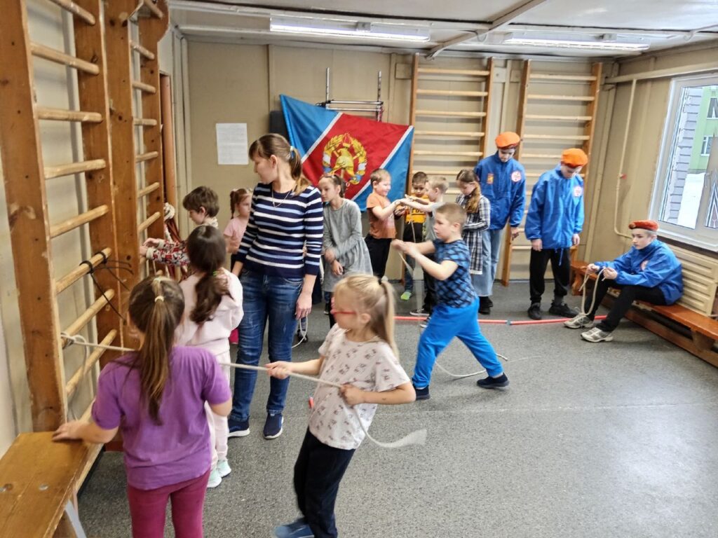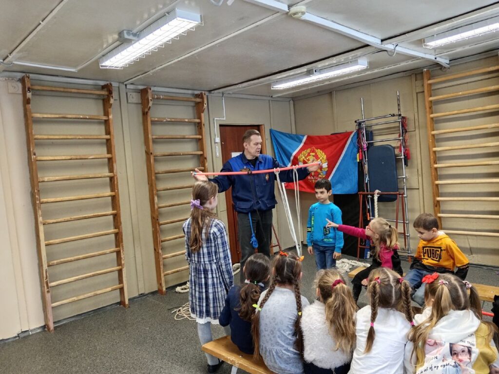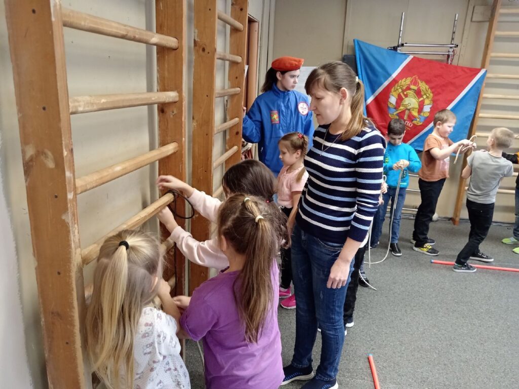 А новый узел, закрепления за опору «седло» или как его называют ребята «крестик», «гномы» учились вязать под руководством юных пожарных инструкторов Анастасии, Алексея и Дмитрия.
