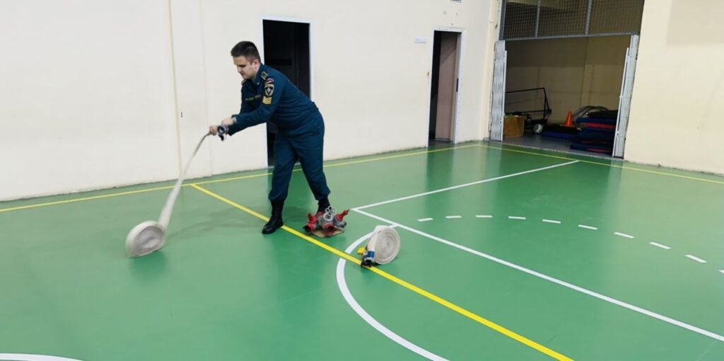 После теоретической части была организована практическая отработка навыков, важных для каждого пожарного. Участники занятия получили возможность попробовать примерить боевую одежду пожарного, ощутить ее вес и узнать о функциональном назначении каждого элемента экипировки. Также ребята отработали технику работы с пожарными рукавами, что позволило им прикоснуться к реальным задачам пожарно-спасательных подразделений.