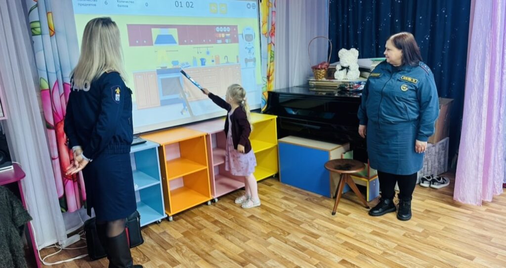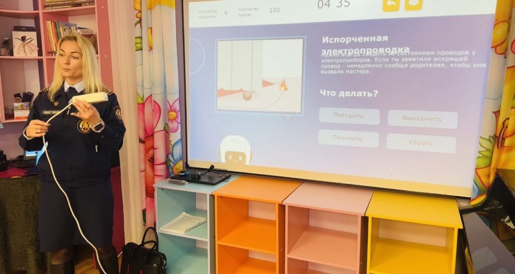 Самым увлекательным моментом стало погружение в онлайн-тренажер на портале вдпо.рф. Этот инновационный инструмент позволил детям визуализировать и отработать реальные ситуации в условиях, максимально приближенных к реальности. Они с энтузиазмом искали потенциальные угрозы в виртуальной детской спальне и прочих домашних помещениях, перегруженных электрическими устройствами. Ребята активно обсуждали найденные нарушения и предлагали решения, как предотвратить пожар.