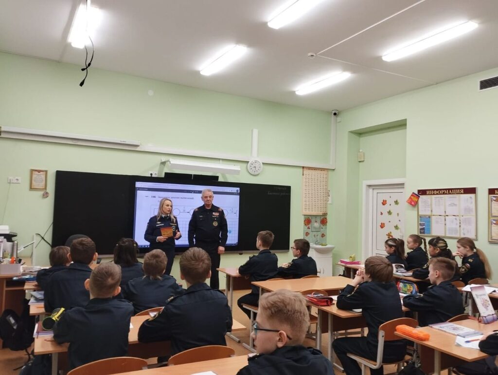 Дежурным караулом 94 пожарно-спасательной части 15 пожарно-спасательного отряда были проведены показательные выступления по тушению условного пожара. А Миклиным Валерием, Чесновой Викторией и Туник Натальей проведены профилактические занятия непосредственно в здании школы. Это было первое занятие, на котором кадетов познакомили с основными терминами и понятиями, применяемыми в пожарной охране. Кадеты узнали об истории создания пожарной охраны в России и во Всеволожском районе. Были крайне удивлены количеству происходящих во Всеволожском районе пожаров и их последствиях.