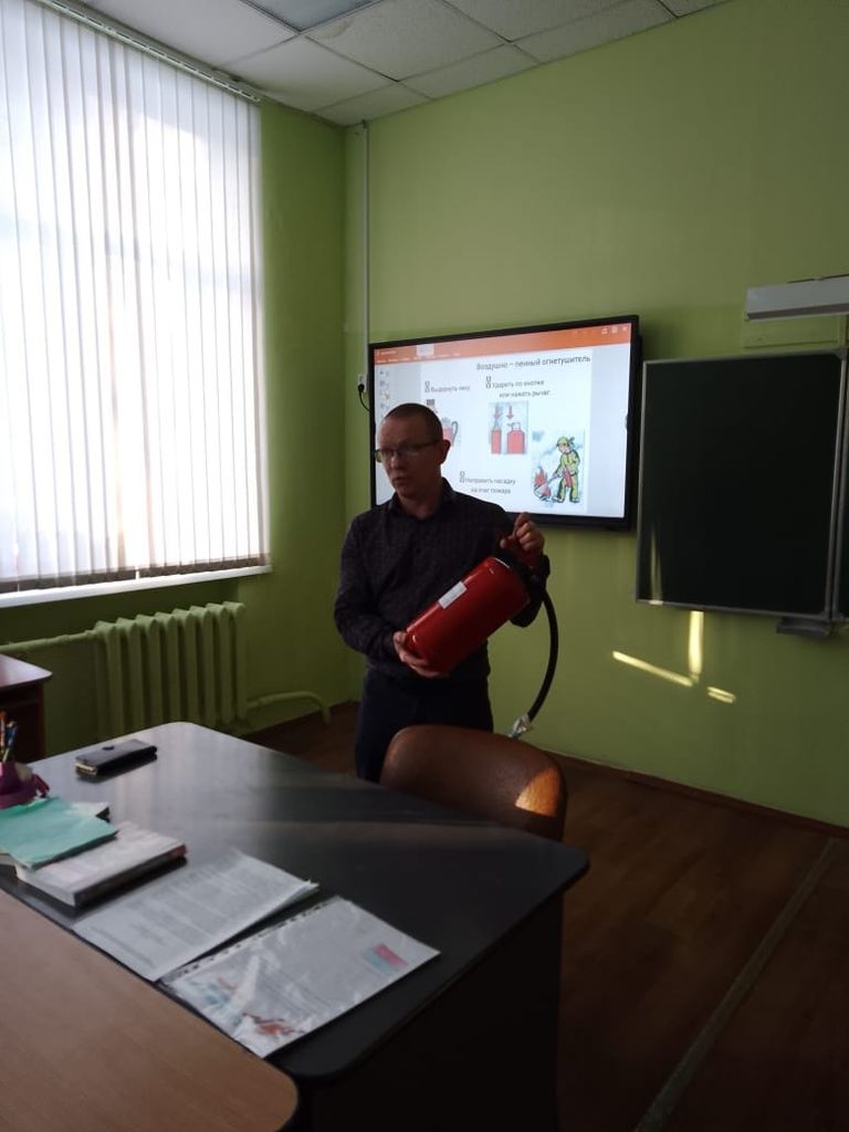 Тем временем в дружине юных пожарных «Жихарево» ГБОУ ЛО «Назийский центр социальной адаптации» прошел семинар для участников движения, педагогического коллектива и технического персонала образовательного учреждения на тему: «Виды огнетушителей и их применение».