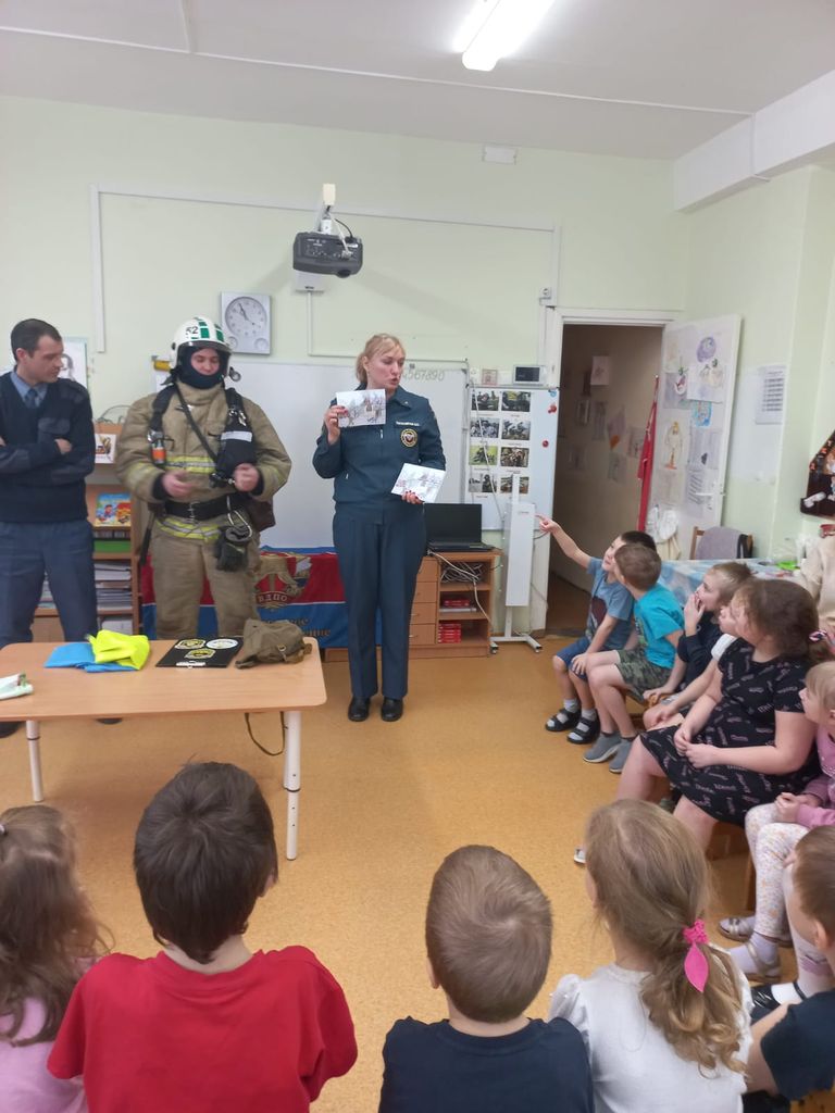 Сотрудники в доступной игровой форме рассказали о действиях во время пожара. Наглядно разыграв ситуацию по закреплению вышеизложенного, а также напомнили номера экстренных служб 112 и 101.
