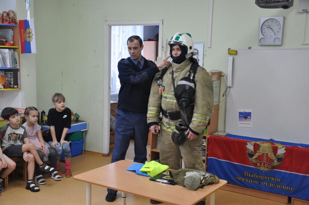 Сотрудники 26 пожарно-спасательного отряда Главного управления МЧС России по Ленинградской области, совместно с Выборгским местным отделением Всероссийского добровольного пожарного общества Ленинградской области, в преддверии 23 февраля – Дня защитника Отечества посетили МБДОУ «Детский сад № 32 города Выборга» с проведением открытого урока по пожарной безопасности и рассказом о профессии пожарный.