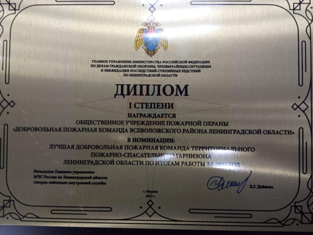 В 2023 году Добровольная пожарная команда Всеволожского района завоевала первое место в Ленинградской области. Отряд государственной противопожарной службы стал лучшим среди всех отрядов ГКУ «Леноблпожспас».