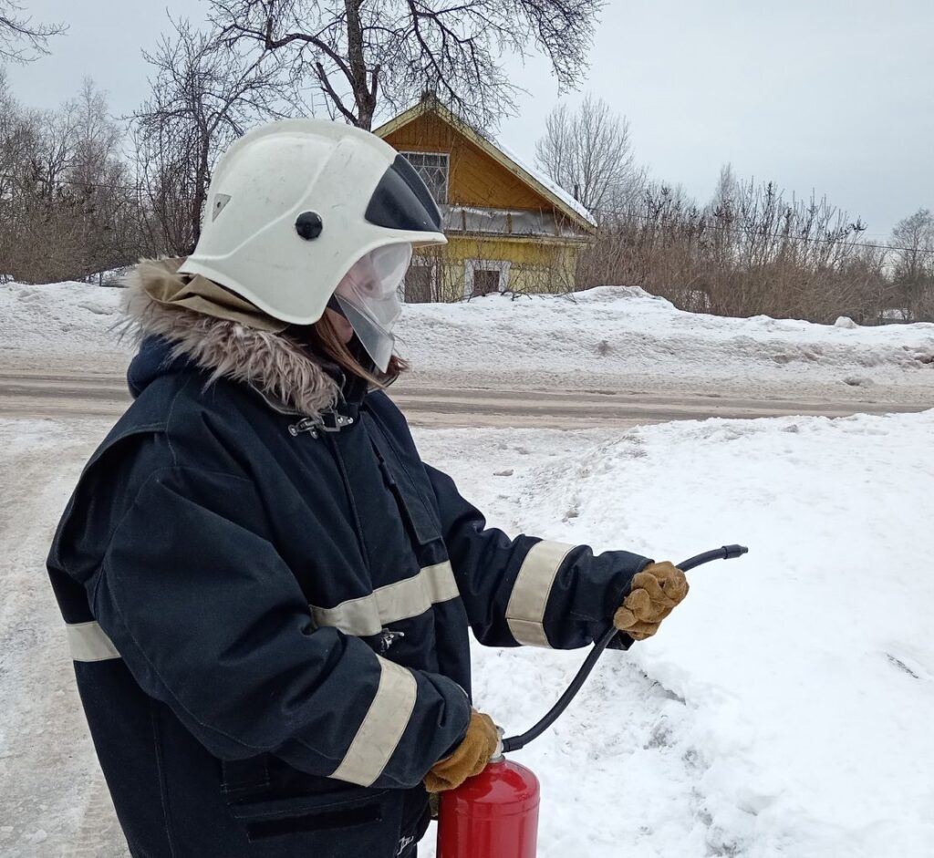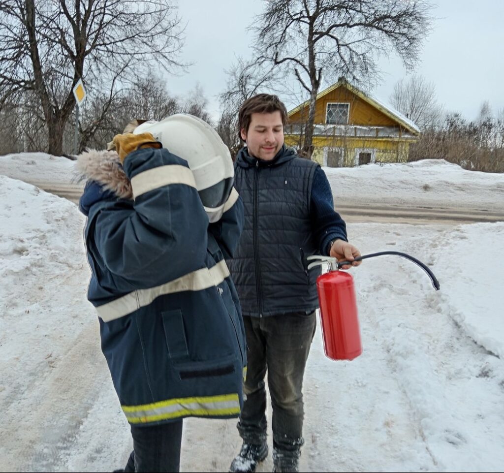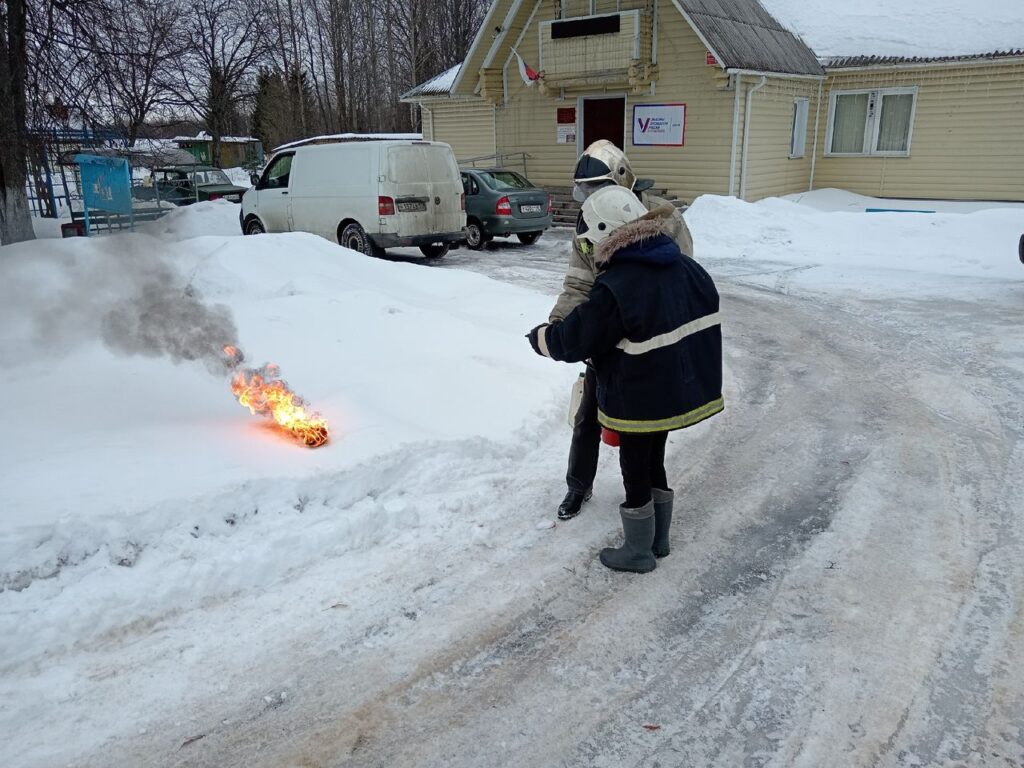 С целью подготовки к масленичным и народным гуляниям, такое занятие прошло с работниками дома культуры деревни Выстав. Любому такому занятию предшествует инструктаж по ТБ и соответственно объясняются правила тушения. И только потом – практическое тушение.