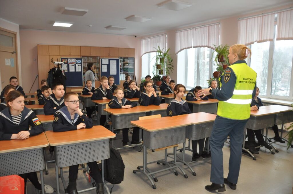 1 марта с данной темой открытого урока сотрудники 26 пожарно-спасательного отряда МЧС России совместно с отделом надзорной деятельности и профилактической работы по Выборгскому району и Выборгским местным отделение ВДПО ЛО пришли к морскому кадетскому 5 «А» классу в МБОУ «СОШ № 6 города Выборга».
