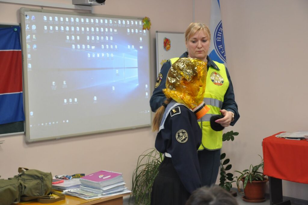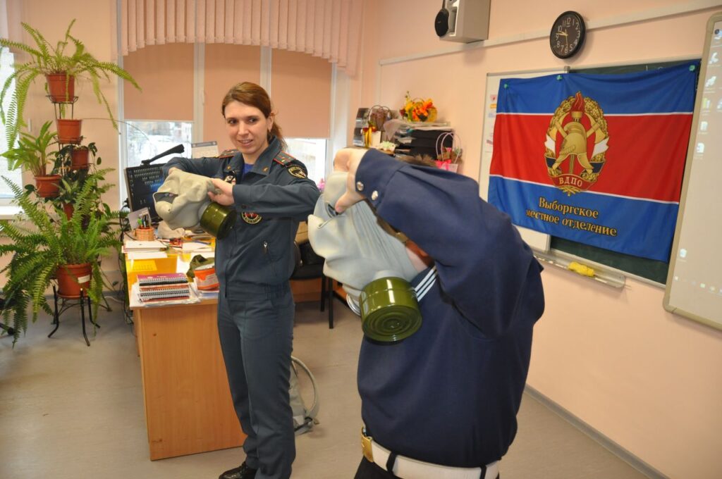 Кадетам показали правильность надевания противогаза, рассказали о действиях при тревоге. Впереди весенние каникулы, поэтому представитель Выборгского МО ВДПО ЛО напомнил о соблюдении правил пожарной безопасности.
