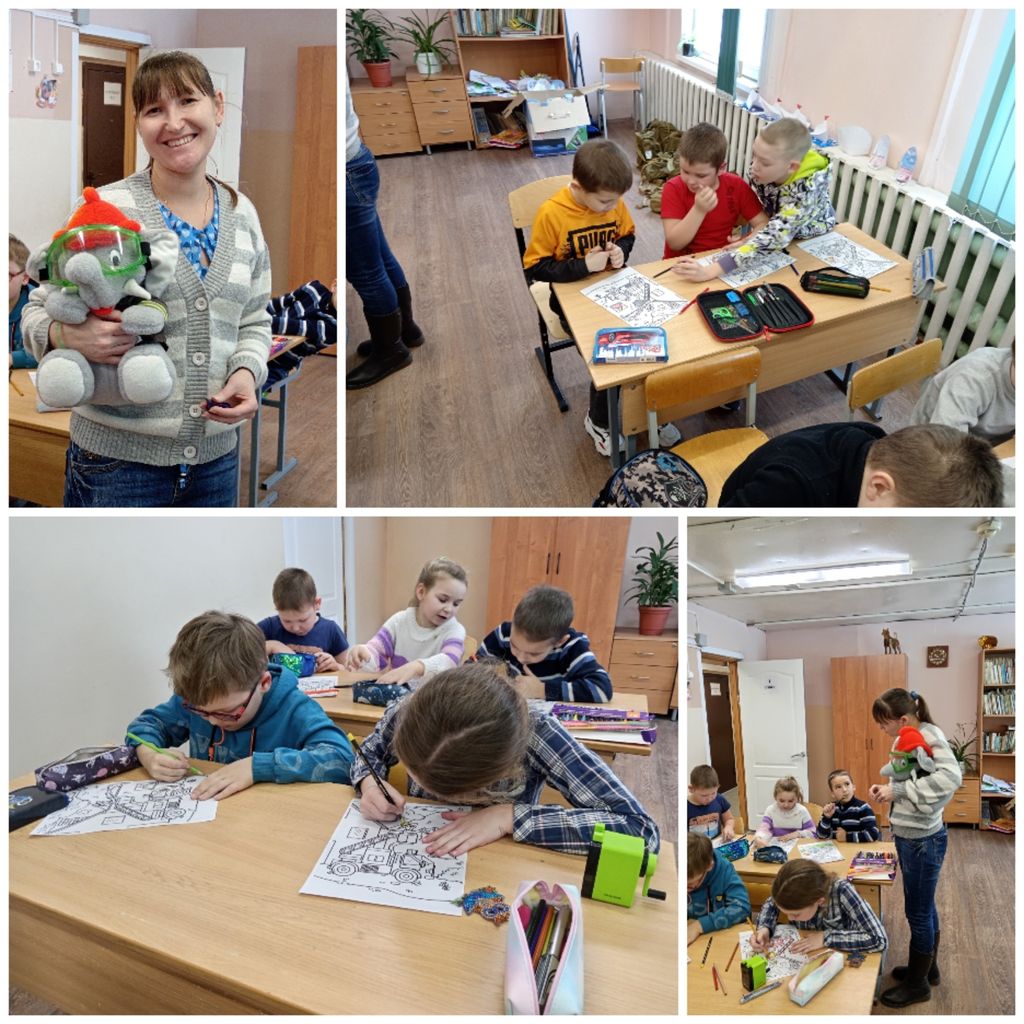 Продолжилось занятие повторением основных правил пожарной безопасности. И традиционно – творческое завершение встречи – выполнение раскраски на пожарную тематику.