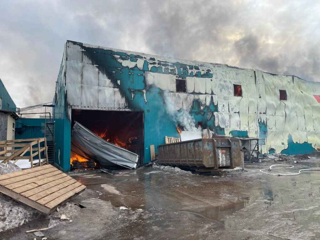 В 14.46 было обнаружено, что горит внутри производственного ангара размера 40*30 м по производству промышленной мебели. Был подан ствол «Б» от автоцистерны ПЧ ЛМО ВДПО ЛО на тушение и защиту соседнего здания, находящегося в 5 метрах от горящего здания.