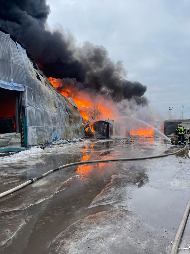 Площадь пожара составила 1000 м кв. с обрушением кровли. В результате данного пожара пострадало 5 организаций, а также двое пострадавших с ожогами рук и лица были переданы сотрудникам скорой помощи.