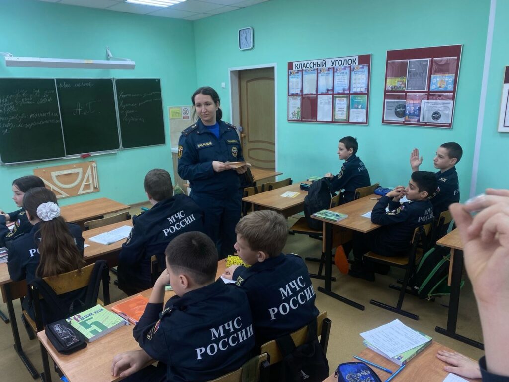 21 марта 2024 года с учениками кадетского класса МОУ «Волосовская СОШ № 2» инспектором отделения надзорной деятельности и профилактической работы Волосовского района Стекольщиковой Еленой Валерьевной совместно с заместителем председателя совета местного отделения ВДПО ЛО Волосовского района Янгиляевым Алексеем Махаремовичем проведен урок по безопасности жизнедеятельности, в рамках которого ребята узнали об основных причинах пожаров, о требованиях пожарной безопасности, о первичных средствах пожаротушения.