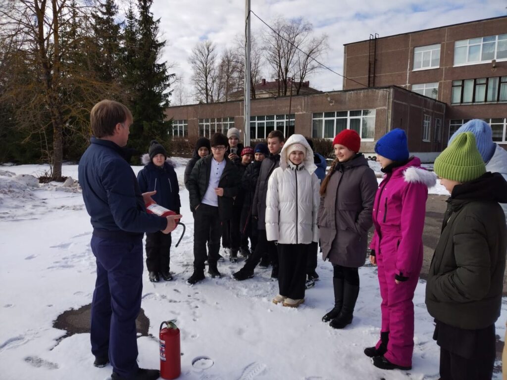 Участие в уроке приняли инспектор чрезвычайного ведомства Ирина Евдокимова и председатель совета Кировского местного отделения ВДПО ЛО Александр Никулин.