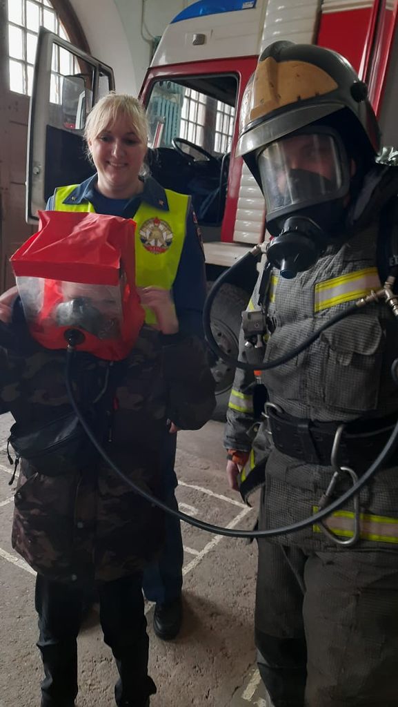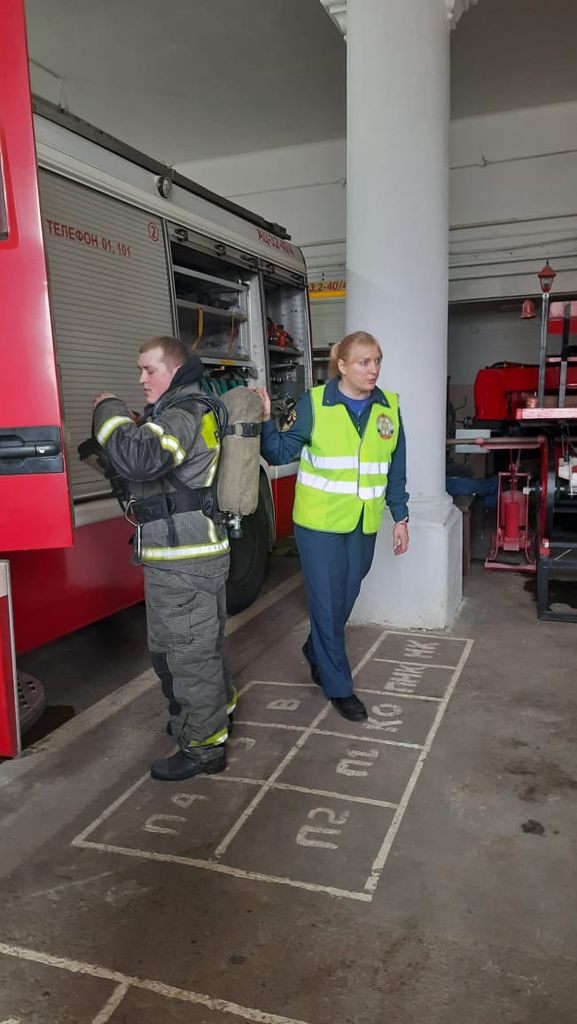 На экскурсии ребята узнали о быте пожарных, помещениях в которых несут свой караул, но самое интересное было для ребят – гараж с пожарной техникой. Они смогли увидеть не только чем наполнен пожарных автомобиль, но и посидеть в нем. Узнали как располагается в кабине пожарный караул, из чего состоит боевая одежда пожарного и что чувствуешь когда надел самоспасатель капюшонного типа.