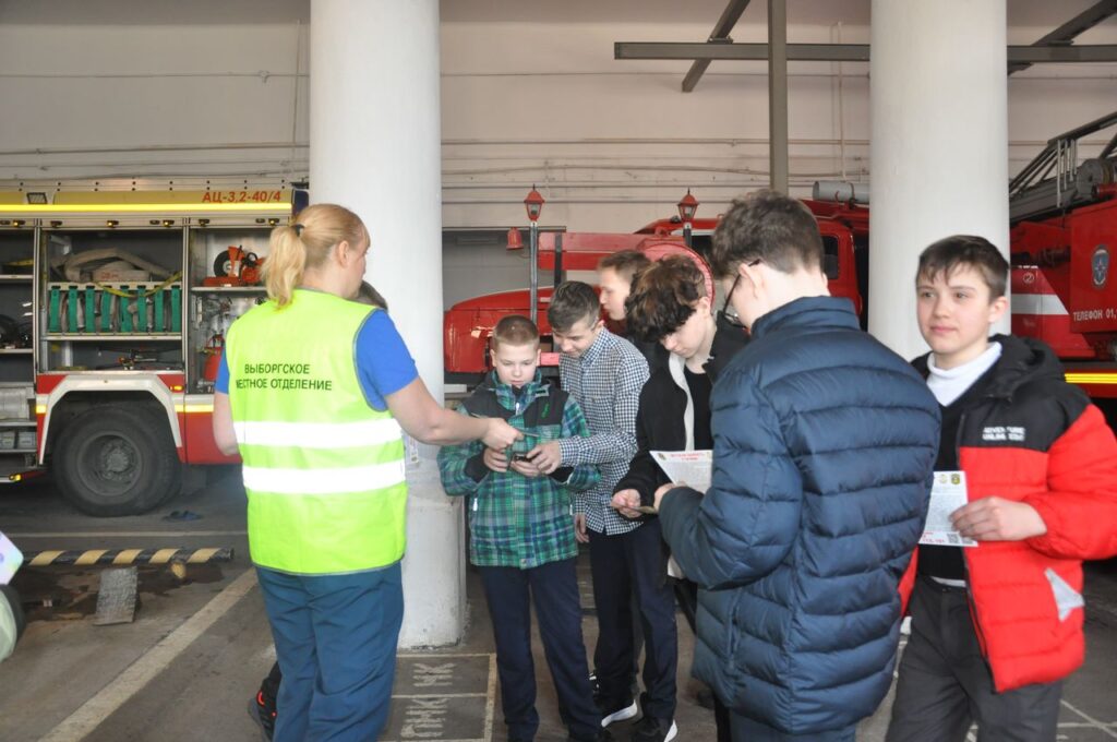 Их встретил сотрудники 52 пожарно-спасательной части 26 пожарно-спасательного отряда МЧС России и Выборгское местное отделение Всероссийского добровольного пожарного общества Ленинградской области. Для детей пожарный – человек героический, и в былые годы, и сегодня, спасающий из огня людей, встающий на пути у разрушения. Уважение к пожарным, интерес к их занятиям может стать стимулом для развития серьезного отношения к собственному поведению, препятствием для бездумных игр с огнем. Но совсем по-другому усваиваются правила пожарной безопасности детьми, когда об этом рассказывает пожарный, поэтому и проводятся экскурсии в пожарную часть.