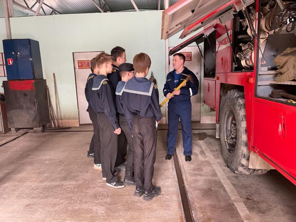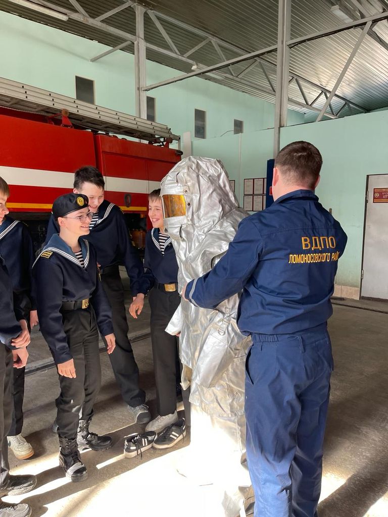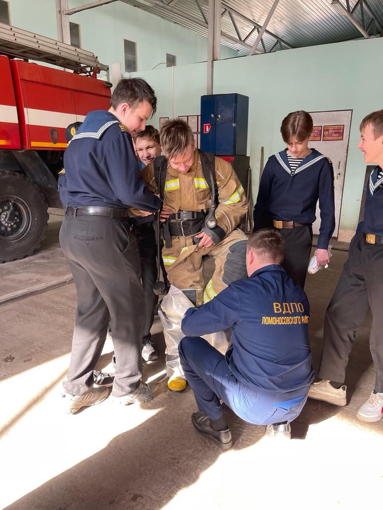 Накануне праздника Дня пожарной охраны ребята из седьмого класса Морской экипаж ГБОУ школы № 449 Пушкинского района города Санкт-Петербурга приехали в пожарную часть Ломоносовского местного отделения ВДПО ЛО для прохождения экскурсии и практической тренировки по одеванию боевой одежды и тушению горящего противня (работа с огнетушителем).