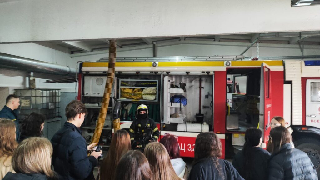 На встречу с пожарными 93 пожарно-спасательной части 15 пожарно-спасательного отряда приехали учащиеся 9-10 классов Романовской общеобразовательной школы.