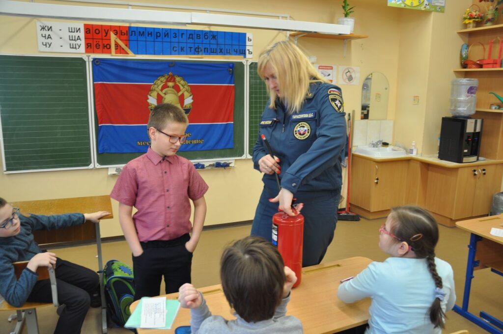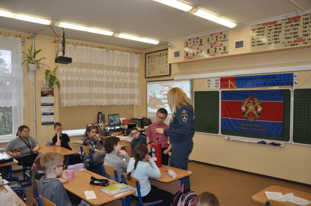 Сотрудники 26 пожарно-спасательного отряда Главного управления МЧС России по Ленинградской области, совместно с Отделом надзорной деятельности и профилактической работы по Выборгскому району и Выборгским местным отделением Всероссийского добровольного пожарного общества Ленинградской области посетили 2 «Б» класс МБОУ «СОШ № 13 города Выборга» с целью проведения открытого урока по теме «Правила пожарной безопасности в быту».