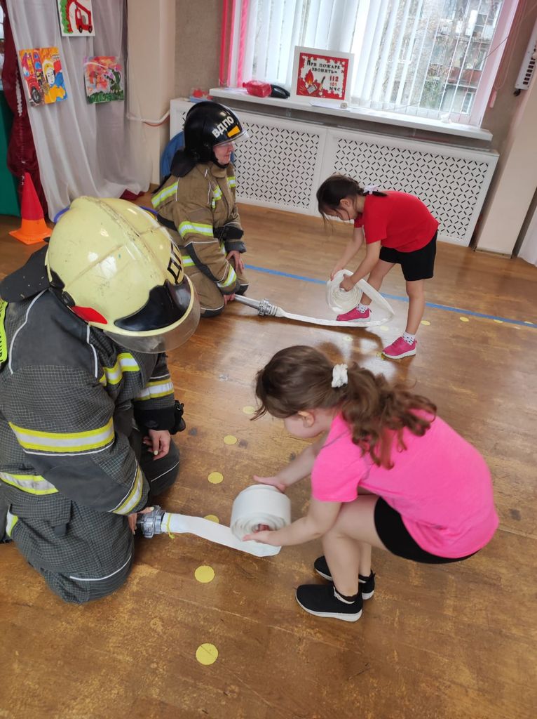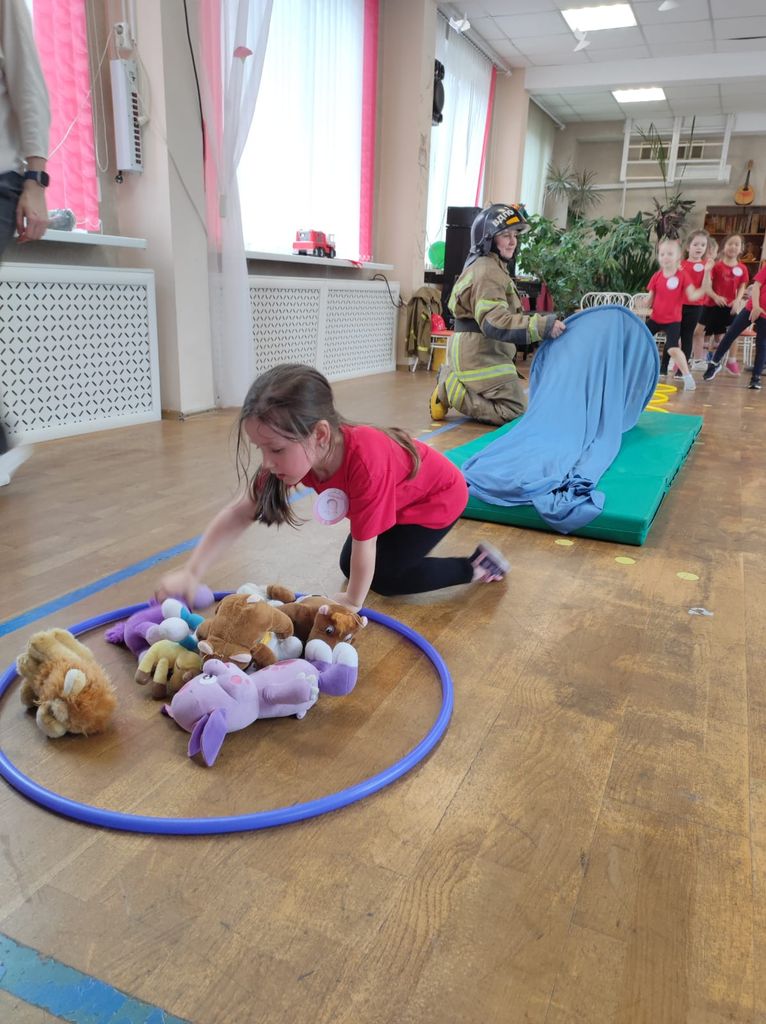 Настя провела с детьми игровую эстафету по ПБ, показала, как правильно оказать первую медицинскую помощь пострадавшему – накладывать повязку, показала боевую одежду пожарного и рассказала много всего интересного о профессии спасателей.