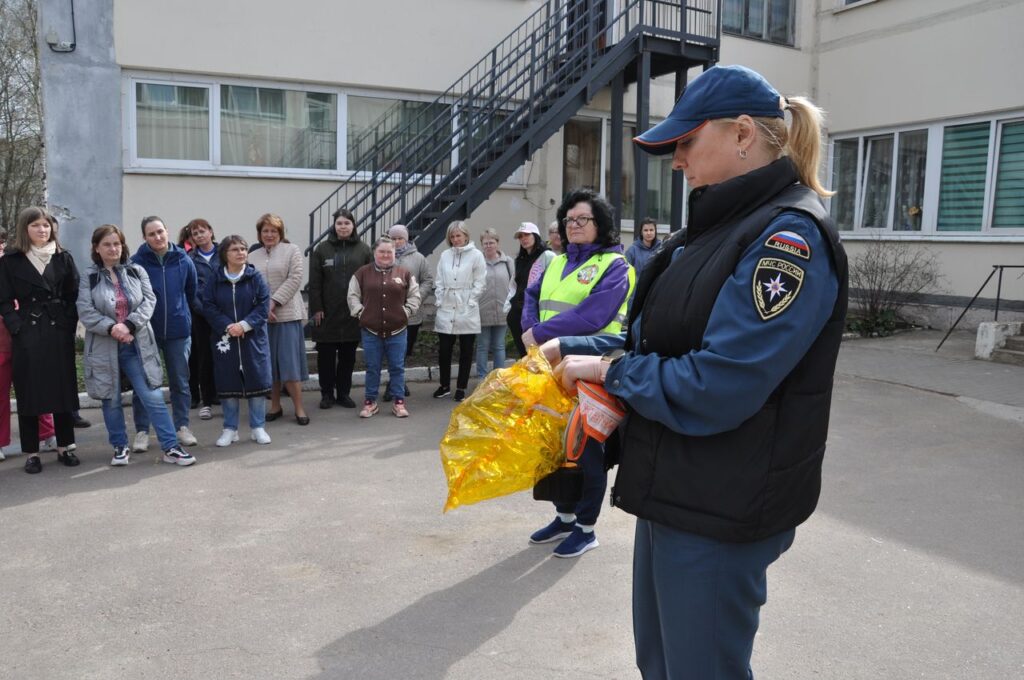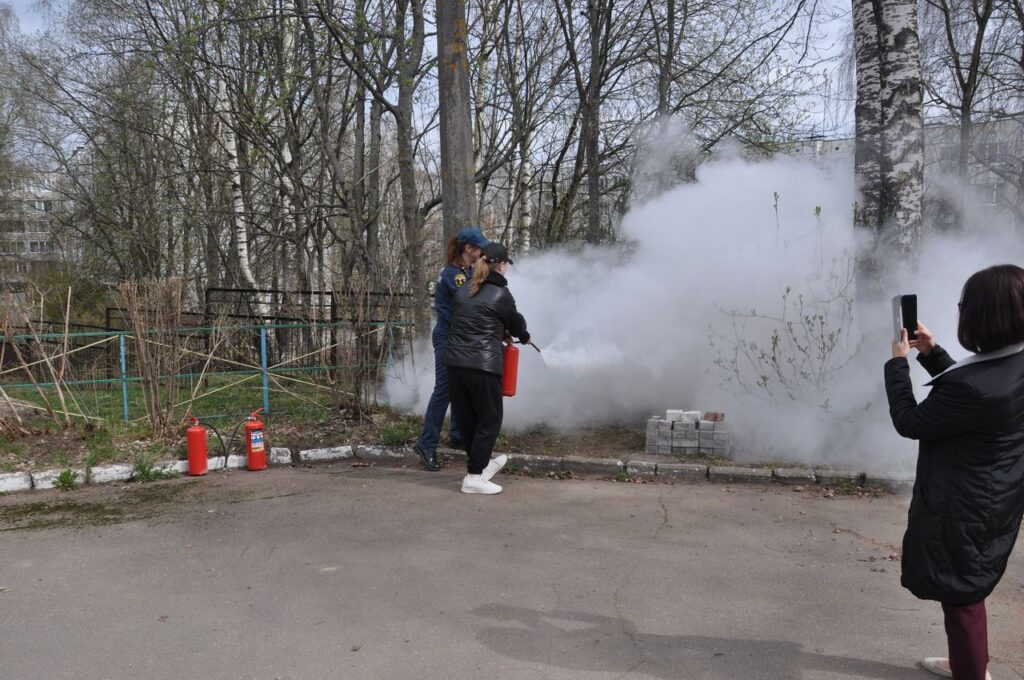 Обучающее занятие с практической отработкой по работе с огнетушителем прошло на территории Ленинградского областного государственного бюджетного учреждения «Выборгский комплексный центр социального обслуживания населения».