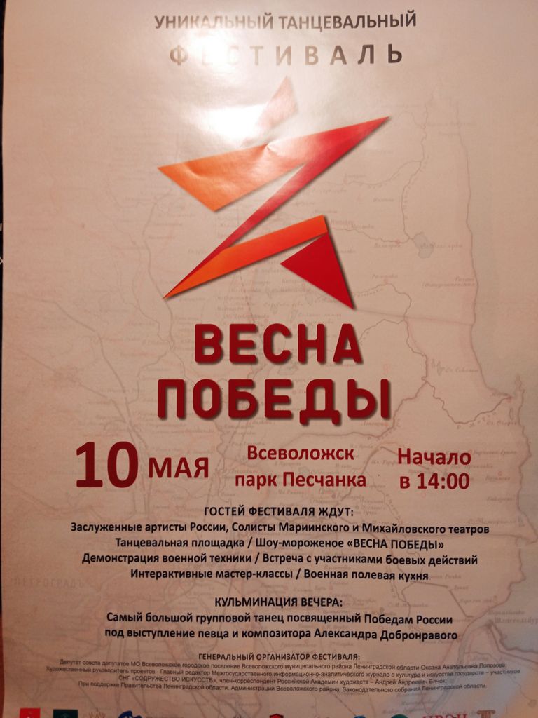 10 мая в парке Песчанка города Всеволожска будет проходить «Уникальный танцевальный фестиваль», посвященный Всенародному празднику День Победы.